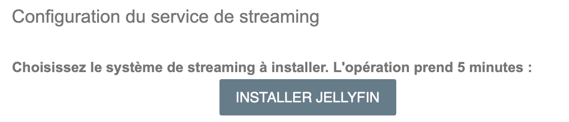 Dans votre console, cliquez sur "Installer le service de streaming" puis "Installer Jellyfin"
