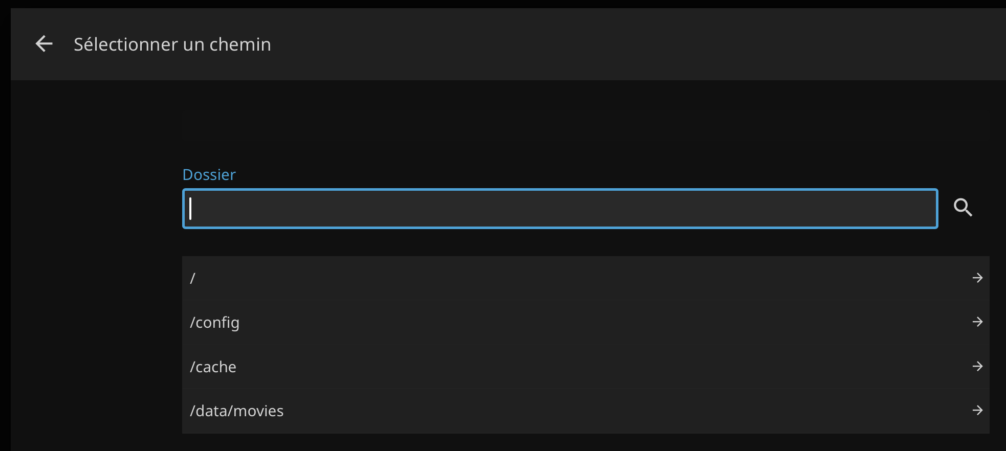 Choisissez le dossier "/data/movies" puis le dossier contenant vos films.