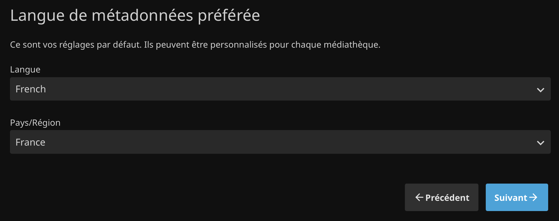 Choisissez la langue des métadonnées